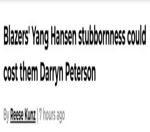 北京时间1月25日,波特兰记者Reese Kunz撰文表示,开拓者对杨瀚森的执念,或许让他们错失了得到达林-彼得森(2026年状元热门)的机会。以下是他的文章——